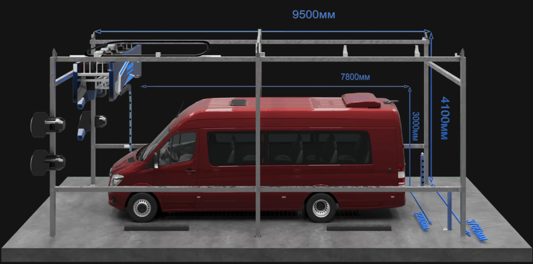 Дополнительно установлены боковые турбо вентиляторы 2×5,5кВт для идеальной сушки авто + уникальная функция нанесения пены на пороги и колёса без потери времени(предварительное замачивание)
